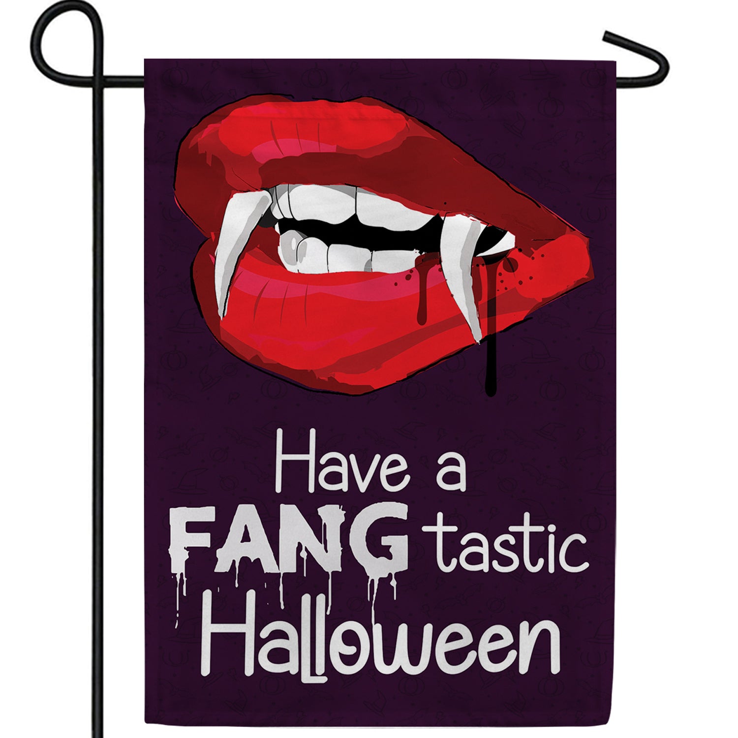 This flag features a vampire's mouth with fangs and blood dripping out with the phrase saying "Have a FANGtastic Halloween."