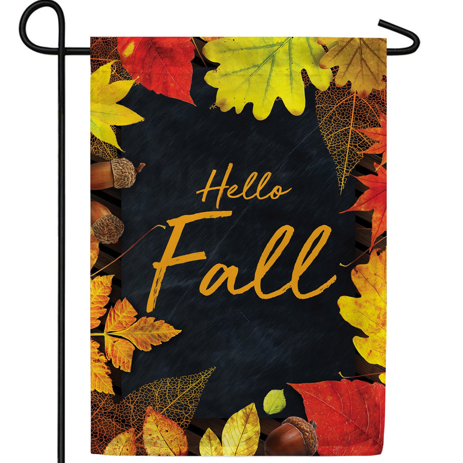 Hello Fall On Black Slate Double Sided Garden Flag